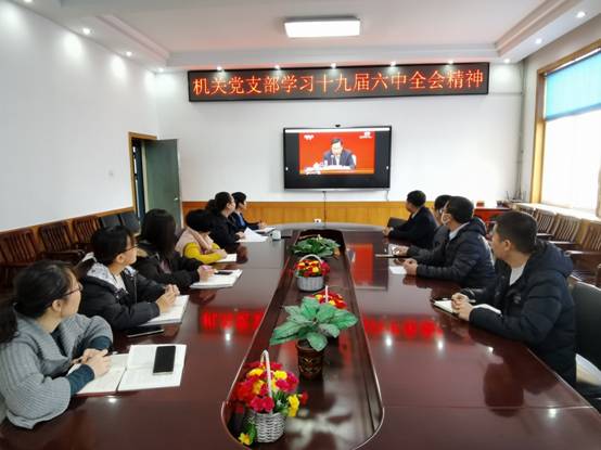 会上,集中学习了《中国共产党第十九届中央委员会第六次全体会议公报》。在党成立100周年的重要历史时刻,在党和人民胜利实现第一个百年奋斗目标、全面建成小康社会,正在向着全面建成社会主义现代化强国的第二个百年奋斗目标迈进的重大历史关头,召开的一次具有里程碑意义的会议。坚持以习近平新时代中国特色社会主义思想为指导,增强“四个意识”、坚定“四个自信”、做到“两个维护”、把学习宣传贯彻党的十九届六中全会精神作为当前和今后一个时期的重大政治任务,以高度的政治责任感和使命感贯彻党的十九届六中全会精神。