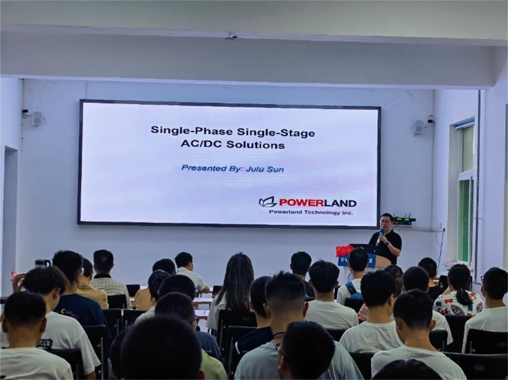 In the construction of "Advanced electric Power Conversion Laboratory", Powerland Technology Inc. donated 3 million yuan. Prof. Xiaoqing Han and Dr. Julu Sun presented the donation certificate and plates to each other, and jointly held the unveiling ceremony for the " Advanced electric Power Conversion Laboratory ". The laboratory will further improve the discipline construction ability and technical achievement transformation ability of power electronics and Power transmission major of Taiyuan University of Technology in the direction of high-frequency power electronics technology, and reserve innovative technologies and products for Powerland Technology Inc.